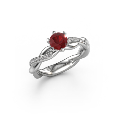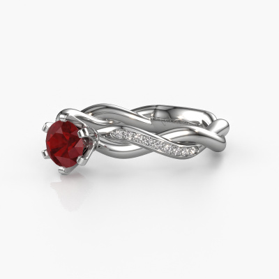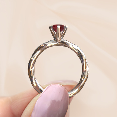 In your eyes, no one else compares to her. She is one in a million, unlike anyone else and pure? These qualities are emphasized perfectly by our fantasy platinum solitaire ruby ring. This ruby is carefully selected by our keen artisan goldsmiths. It equals the unique qualities of the love of your life. There is no better way to memorialize your proposal than this symbol of true love. The ring shown above is called the Page, we call this a solitaire ring because it contains a single gemstone. The engagement ring is made in platinum and has a round ruby of 5.4 mm. Each piece of jewellery is made with passion and love by one of our master goldsmiths.Are you on a budget? Please feel free to contact us, so we can go discuss your options. We offer our engagement rings at guaranteed best price, because we make them to order. You won't find such a price anywhere else!Do you have a specific ring in mind? One you came across somewhere. Please feel free to tell us your wishes and we will turn your design into a unique engagement ring. You can follow the development of your ring design because we use 3D drawings. This gives you a realistic preview of your design. We will gladly send you a non-binding offer, based on a fair price/ quality ratio. It will amaze you.To make it easier for you, we offer a 30 day return policy. Check our terms and conditions.