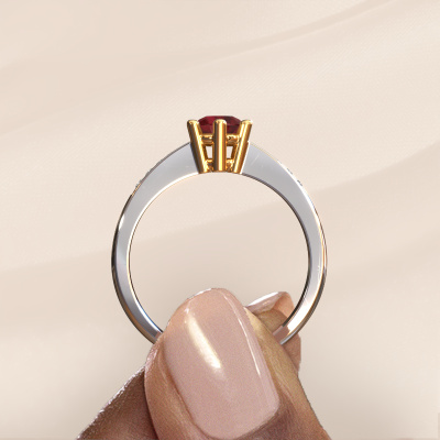 The ring shown above is called the Luna 2. We call this type of ring a pavé solitaire ring because it has one centre gemstone and a band that is also pave set with gemstones. This engagement ring is made in 14 Carat white gold set with a 5 mm round ruby, and pave set diamonds at the sides. Each piece of jewellery is unique in every way! Simply customize to your liking,This classic white gold pavé solitaire engagement ring has an exquisite round ruby centre stone. To further accentuate the centre stone, the band is set full with more diamonds. Its open prong setting allows light to strike the ruby from various angles and this adds sparkle to your ruby ring. The photo shown above depicts the goldsmith's carefully handcrafted details of the ring. The high positioning of the centre stone is truly eye-catching. The perfect engagement ring for the crown jewel of your life!Because we design and deliver our own rings, we can offer you a engagement ring at a price you won't find anywhere else. A ring is made to order, which helps prevent excess supplies, so we can make you a great price offer. We understand it feels risky, buying your engagement ring online, but we will gladly assist in the designing process, taking your budget into consideration.Our team adds new designs to our online collection daily. Our designers and goldsmiths work together in creating the best design. We strive to offer a diverse collection of jewels. Perhaps you have a specific jewel design in mind. One you came across somewhere. Please contact us for a free consultation. We will make you an offer, based on a fair price/ quality ratio, that will baffle you.To make it easier for you, we offer a 30 day return policy. Check our terms and conditions.
