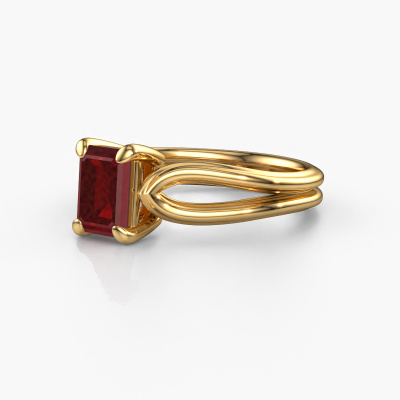 The ring shown above is called the Antonia eme 1, we call this a solitaire ring because it contains a single gemstone. The engagement ring is made in 14 Carat gold and has a emerald cut ruby of 7x5 mm. The cool thing about our configurator is that you can compile your own piece of jewellery, into a completely personalized one. This solitaire ring is crafted in the precious metals gold with gold, but of course you are free to pick your own colours. Each piece of jewellery is created to add sparkle to your finger, each jewel is lovingly made by hand by our goldsmiths.The solitaire ring is a special type of engagement ring. Its open prong setting allows light to strike the gemstone from various angles. This fantasy engagement ring is a stunning eye-catcher because of the high positioning of the gemstone. In order for you to commemorate your proposal with a unique ring, we carefully adorn this solitaire ring by hand. The love of your life deserves nothing but the best. Because we design and deliver our own rings, we can offer you a engagement ring at a price you won't find anywhere else. A ring is made to order, which helps prevent excess supplies, so we can make you a great price offer. We understand it feels risky, buying your engagement ring online, but we will gladly assist in the designing process, taking your budget into consideration.Our designers and goldsmiths work together each day, creating new jewels. Perhaps you have found a nice fantasy engagement ring somewhere, which can be used to customize your unique ring. Please feel free to contact us. We will make you an offer, based on a fair price/ quality ratio, which will amaze you.To make it easier for you, we offer a 30 day return policy. Check our terms and conditions.