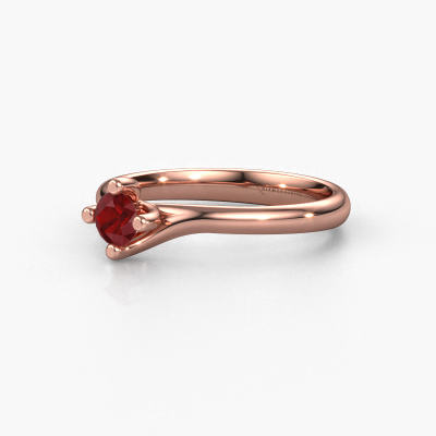 In your eyes, no one else compares to her. She is one in a million, unlike anyone else and pure? These qualities are emphasized perfectly by our modern rose gold solitaire ruby ring. This ruby is carefully selected by our keen artisan goldsmiths. It equals the unique qualities of the love of your life. There is no better way to memorialize your proposal than this symbol of true love. The ring shown above is called the Dewi Round, we call this a solitaire ring because it contains a single gemstone. The engagement ring is made in 14 Carat rose gold and has a round ruby of 4 mm. Each piece of jewellery is made to shine bright around your finger. Each jewel is hand made with love by our goldsmiths.After receiving your order, our goldsmiths will passionately start the creative process of making your engagement ring in our own studio. Because we don't have a big stockpile, these costs will not be passed on to you. Our pricing is proof of that! We offer top quality jewels at lowest price, guaranteed.Different styles of new rings are made daily by our team. Perhaps you have found a solitaire engagement ring somewhere. One you would like to give to your loved one. Please feel free to share your thoughts and design with our jewel designers. We would love to turn your design into a modern engagement ring. You can follow the development of your ring design because we use very detailed 3D drawings. On top of that, you can order a dummy of the design. A dummy is a plastic ring, which can be shaped according your ring design. You can try it on and check if the engagement ring is up to standard. We will gladly send you a non-binding offer, based on a fair price/ quality ratio. The offer will baffle you, considering the quality of the ring and gemstones.To make it easier for you, we offer a 30 day return policy. Check our terms and conditions.