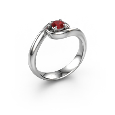 In your eyes, no one else compares to her. She is one in a million, unlike anyone else and pure? These qualities are emphasized perfectly by our modern white gold solitaire ruby ring. This ruby is carefully selected by our keen artisan goldsmiths. It equals the unique qualities of the love of your life. There is no better way to memorialize your proposal than this symbol of true love. The ring shown above is called the Linn, we call this a solitaire ring because it contains a single gemstone. The engagement ring is made in 14 Carat white gold and has a round ruby of 4.2 mm. Each piece of jewellery is unique in every way! Simply customize to your likingAfter receiving your order, our goldsmiths will passionately start the creative process of making your engagement ring in our own studio. Because we don't have a big stockpile, these costs will not be passed on to you. Our pricing is proof of that! We offer top quality jewels at lowest price, guaranteed.Our team adds new designs to our online collection daily. Our designers and goldsmiths work together in creating the best design. We strive to offer a diverse collection of jewels. Perhaps you have a specific jewel design in mind. One you came across somewhere. Please contact us for a free consultation. We will make you an offer, based on a fair price/ quality ratio, that will baffle you.To make it easier for you, we offer a 30 day return policy. Check our terms and conditions.