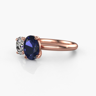 This 14 Carat rose gold ring is called Toi et Moi OVL-OVL and is set with sapphire. How would you describe the style of the love of your life? Does she have a unique sense of style? This stunning sublime rose gold engagement ring can be custom-made to your own or her liking. Our sapphire gemstones have been carefully selected because we believe your modern engagement ring must be adorned with nothing but the most beautiful gemstone. Don't you agree? This jewel is made by a team of passionate goldsmiths and jewel designers. This will make your crown jewel truly eye-catching.After receiving your order, our goldsmiths will start the creative process of making your Toi et Moi OVL-OVL engagement ring. We don't keep stock. This is advantageous because these costs will not be passed on to you. Therefore, we can offer jewellery at exceptionally low prices.Different styles of new rings are made daily by our team. Perhaps you have found a 2 stone engagement ring somewhere. One you would like to give to your loved one. Please feel free to share your thoughts and design with our jewel designers. We would love to turn your design into a modern engagement ring. You can follow the development of your ring design because we use very detailed 3D drawings. On top of that, you can order a dummy of the design. A dummy is a plastic ring, which can be shaped according your ring design. You can try it on and check if the engagement ring is up to standard. We will gladly send you a non-binding offer, based on a fair price/ quality ratio. The offer will baffle you, considering the quality of the ring and gemstones.To make it easier for you, we offer a 30 day return policy. Check our terms and conditions.