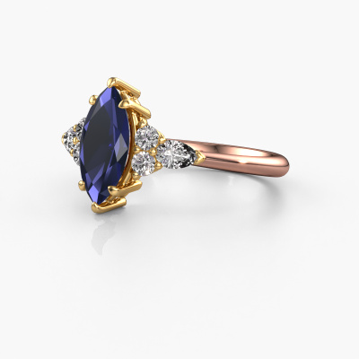 This 14 Carat rose gold ring is called Melani MRQ and is set with 11x5.5 mm sapphire. What is it that makes your relationship unique? What is it about her that makes you want to bend down on one knee? The unique bond between the two of you is emphasized by an equally unique ring. A one of a kind graceful cluster engagement ring made especially for her. That is why this trendy ring fits her like a glove. Each specific detail of this graceful rose gold sapphire set engagement ring is hand-picked, crafted and polished by our expert goldsmith. The result is an exquisite ring, unique and perfectly crafted to perfection. That is what our expert Goldsmiths strive for. This jewel is made just for you, with attention to detail and design.After receiving your order, our goldsmiths will passionately start the creative process of making your engagement ring in our own studio. Because we don't have a big stockpile, these costs will not be passed on to you. Our pricing is proof of that! We offer top quality jewels at lowest price, guaranteed.Do you have a specific ring in mind? One you came across somewhere. Please feel free to tell us your wishes and we will turn your design into a unique engagement ring. You can follow the development of your ring design because we use 3D drawings. This gives you a realistic preview of your design. We will gladly send you a non-binding offer, based on a fair price/ quality ratio. It will amaze you.To make it easier for you, we offer a 30 day return policy. Check our terms and conditions.