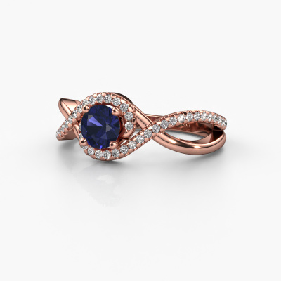 The ring shown above is called the Melody. We call this type of ring a pavé solitaire ring because it has one centre gemstone and a band that is also pave set with gemstones. This engagement ring is made in 14 Carat rose gold set with a 5 mm round sapphire, and pave set diamonds at the sides. Each piece of jewellery is unique in every way! Simply customize to your likingThis classic rose gold pavé solitaire engagement ring has an exquisite round sapphire centre stone. To further accentuate the centre stone, the band is set full with more diamonds. Its open prong setting allows light to strike the sapphire from various angles and this adds sparkle to your sapphire ring. The photo shown above depicts the goldsmith's carefully handcrafted details of the ring. The high positioning of the centre stone is truly eye-catching. The perfect engagement ring for the crown jewel of your life!Because we design and deliver our own rings, we can offer you a engagement ring at a price you won't find anywhere else. A ring is made to order, which helps prevent excess supplies, so we can make you a great price offer. We understand it feels risky, buying your engagement ring online, but we will gladly assist in the designing process, taking your budget into consideration.Do you have a specific ring in mind? One you came across somewhere. Please feel free to tell us your wishes and we will turn your design into a unique engagement ring. You can follow the development of your ring design because we use 3D drawings. This gives you a realistic preview of your design. We will gladly send you a non-binding offer, based on a fair price/ quality ratio. It will amaze you.To make it easier for you, we offer a 30 day return policy. Check our terms and conditions.