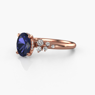 This 14 Carat rose gold ring is called Emma OVL and is set with sapphire. How would you describe the style of the love of your life? Does she have a unique sense of style? This stunning sublime rose gold engagement ring can be custom-made to your own or her liking. Our sapphire gemstones have been carefully selected because we believe your fantasy engagement ring must be adorned with nothing but the most beautiful gemstone. Don't you agree? This jewel is made by a team of passionate goldsmiths and jewel designers. This will make your crown jewel truly eye-catching.By using a combination of the latest modern techniques, combined with ancient crafting, we can make all our engagement rings in our own studio. Each jewel is made to order. This is advantageous because we can offer you a price you won't find anywhere else.Different styles of new rings are made daily by our team. Perhaps you have found a pavé solitaire engagement ring somewhere. One you would like to give to your loved one. Please feel free to share your thoughts and design with our jewel designers. We would love to turn your design into a fantasy engagement ring. You can follow the development of your ring design because we use very detailed 3D drawings. On top of that, you can order a dummy of the design. A dummy is a plastic ring, which can be shaped according your ring design. You can try it on and check if the engagement ring is up to standard. We will gladly send you a non-binding offer, based on a fair price/ quality ratio. The offer will baffle you, considering the quality of the ring and gemstones.To make it easier for you, we offer a 30 day return policy. Check our terms and conditions.