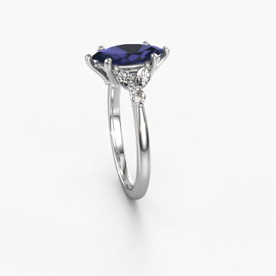 The ring shown above is called the Megan MRQ. We call this type of ring a pavé solitaire ring because it has one centre gemstone and a band that is also pave set with gemstones. This engagement ring is made in 14 Carat white gold set with a 11x5.5 mm marquise sapphire, and pave set lab-grown diamonds at the sides. Each piece of jewellery is made with passion and love by one of our master goldsmiths.This fantasy white gold pavé solitaire engagement ring has an exquisite marquise sapphire centre stone. To further accentuate the centre stone, the band is set full with more lab-grown diamonds. Its open prong setting allows light to strike the sapphire from various angles and this adds sparkle to your sapphire ring. The photo shown above depicts the goldsmith's carefully handcrafted details of the ring. The high positioning of the centre stone is truly eye-catching. The perfect engagement ring for the crown jewel of your life![bestp1v_long]Have you found a specific engagement ring somewhere which you would like to give to your loved one? Please feel free to express your wishes to our jewel designers because we would be honoured to turn your design into a fantasy engagement ring. You can follow the development of your ring design because we use 3D drawings. This gives you a realistic preview of how your design will look. You can also preorder a dummy. A dummy is a plastic ring, which can be shaped according your ring design. You can try it on and check if its width and size are suitable for you. We will gladly send you a non-binding offer, based on a fair price/ quality ratio. It will amaze you, considering the quality of the ring and gemstones.To make it easier for you, we offer a 30 day return policy. Check our terms and conditions.