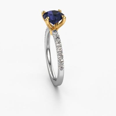 The ring shown above is called the Crystal RND 2. We call this type of ring a pavé solitaire ring because it has one centre gemstone and a band that is also pave set with gemstones. The 14 Carat white gold engagement ring is set with a round 7.3 mm sapphire centre stone and the band is pave set with lab grown diamond gemstones. Each jewel is unique in every way! Simply customize to your liking,This classic white gold pavé solitaire engagement ring has an exquisite round sapphire centre stone. To further accentuate the centre stone, the band is fully set with more lab-grown diamonds. Its open prong setting allows light to strike the sapphire from various angles and this adds sparkle to your sapphire ring. The photo shown above depicts the goldsmith's carefully handcrafted details of the ring. The high positioning of the centre stone is truly eye-catching. The perfect engagement ring for the crown jewel of your life! After receiving your order, our goldsmiths will start the creative process of making your Crystal RND 2 engagement ring. We don't keep stock. This is advantageous because these costs will not be passed on to you. Therefore, we can offer jewellery at exceptionally low prices.Different styles of new rings are made daily by our team. Perhaps you have found a pavé solitaire engagement ring somewhere. One you would like to give to your loved one. Please feel free to share your thoughts and design with our jewel designers. We would love to turn your design into a classic engagement ring. You can follow the development of your ring design because we use very detailed 3D drawings. On top of that, you can order a dummy of the design. A dummy is a plastic ring, which can be shaped according your ring design. You can try it on and check if the engagement ring is up to standard. We will gladly send you a non-binding offer, based on a fair price/ quality ratio. The offer will baffle you, considering the quality of the ring and gemstones.To make it easier for you, we offer a 30 day return policy. Check our terms and conditions.