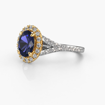 The ring shown above is called the Kimber OVL. We call this type of ring a pavé solitaire ring because it has one centre gemstone and a band that is also pave set with gemstones. The 14 Carat white gold engagement ring is set with a oval 8x6 mm sapphire centre stone and the band is pave set with lab grown diamond gemstones. Each jewel is made with passion and love by one of our master goldsmiths.This exclusive white gold pavé solitaire engagement ring has an exquisite oval sapphire centre stone. To further accentuate the centre stone, the band is fully set with more lab-grown diamonds. Its open prong setting allows light to strike the sapphire from various angles and this adds sparkle to your sapphire ring. The photo shown above depicts the goldsmith's carefully handcrafted details of the ring. The high positioning of the centre stone is truly eye-catching. The perfect engagement ring for the crown jewel of your life! By using a combination of the latest modern techniques, combined with ancient crafting, we can make all our engagement rings in our own studio. Each jewel is made to order. This is advantageous because we can offer you a price you won't find anywhere else.Our team adds new designs to our online collection daily. Our designers and goldsmiths work together in creating the best design. We strive to offer a diverse collection of jewels. Perhaps you have a specific jewel design in mind. One you came across somewhere. Please contact us for a free consultation. We will make you an offer, based on a fair price/ quality ratio, that will baffle you.To make it easier for you, we offer a 30 day return policy. Check our terms and conditions.