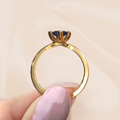 In your eyes, no one else compares to her. She is one in a million, unlike anyone else and pure? These qualities are emphasized perfectly by our modern gold solitaire sapphire ring. This sapphire is carefully selected by our keen artisan goldsmiths. It equals the unique qualities of the love of your life. There is no better way to memorialize your proposal than this symbol of true love. The ring shown above is called the Dewi Square, we call this a solitaire ring because it contains a single gemstone. The Engagement ring is made in 14 Carat gold and has a princess sapphire of 4 mm. Each piece of jewellery is made just for you by our master goldsmiths in our own studio.By using a combination of the latest modern techniques, combined with ancient crafting, we can make all our Engagement rings in our own studio. Each jewel is made to order. This is advantageous because we can offer you a price you won't find anywhere else.Our designers and goldsmiths work together each day, creating new jewels. Perhaps you have found a nice modern Engagement ring somewhere, which can be used to customize your unique ring. Please feel free to contact us. We will make you an offer, based on a fair price/ quality ratio, which will amaze you.To make it easier for you, we offer a 30 day return policy. Check our terms and conditions.