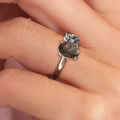 This platinum ring is called Toi et Moi OVL-OVL and is set with smokey quartz. How would you describe the style of the love of your life? Does she have a unique sense of style? This stunning sublime platinum engagement ring can be custom-made to your own or her liking. Our smokey quartz gemstones have been carefully selected because we believe your modern engagement ring must be adorned with nothing but the most beautiful gemstone. Don't you agree? This jewel is made by a team of passionate goldsmiths and jewel designers. This will make your crown jewel truly eye-catching.After receiving your order, our goldsmiths will start the creative process of making your Toi et Moi OVL-OVL engagement ring. We don't keep stock. This is advantageous because these costs will not be passed on to you. Therefore, we can offer jewellery at exceptionally low prices.Different styles of new rings are made daily by our team. Perhaps you have found a 2 stone engagement ring somewhere. One you would like to give to your loved one. Please feel free to share your thoughts and design with our jewel designers. We would love to turn your design into a modern engagement ring. You can follow the development of your ring design because we use very detailed 3D drawings. On top of that, you can order a dummy of the design. A dummy is a plastic ring, which can be shaped according your ring design. You can try it on and check if the engagement ring is up to standard. We will gladly send you a non-binding offer, based on a fair price/ quality ratio. The offer will baffle you, considering the quality of the ring and gemstones.To make it easier for you, we offer a 30 day return policy. Check our terms and conditions.