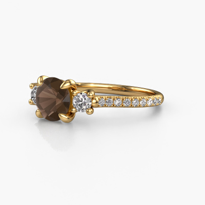 This 14 Carat gold ring is called Jesica and is set with 6.8 mm smokey quartz. What is it that makes your relationship unique? What is it about her that makes you want to bend down on one knee? The unique bond between the two of you is emphasized by an equally unique ring. A one of a kind graceful 3-stone engagement ring made especially for her. That is why this classic ring fits her like a glove. Each specific detail of this graceful gold smokey quartz set engagement ring is hand-picked, crafted and polished by our expert goldsmith. The result is an exquisite ring, unique and perfectly crafted to perfection. That is what our expert Goldsmiths strive for. This jewel is made just for you, with attention to detail and design.After receiving your order, our goldsmiths will passionately start the creative process of making your engagement ring in our own studio. Because we don't have a big stockpile, these costs will not be passed on to you. Our pricing is proof of that! We offer top quality jewels at lowest price, guaranteed.Different styles of new rings are made daily by our team. Perhaps you have found a 3-stone engagement ring somewhere. One you would like to give to your loved one. Please feel free to share your thoughts and design with our jewel designers. We would love to turn your design into a classic engagement ring. You can follow the development of your ring design because we use very detailed 3D drawings. On top of that, you can order a dummy of the design. A dummy is a plastic ring, which can be shaped according your ring design. You can try it on and check if the engagement ring is up to standard. We will gladly send you a non-binding offer, based on a fair price/ quality ratio. The offer will baffle you, considering the quality of the ring and gemstones.To make it easier for you, we offer a 30 day return policy. Check our terms and conditions.