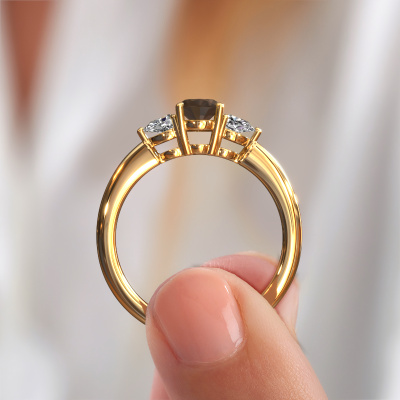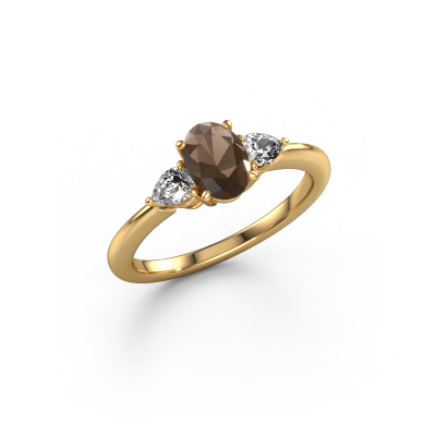 This 14 Carat gold ring is called Chanou OVL and is set with smokey quartz. How would you describe the style of the love of your life? Does she have a unique sense of style? This stunning graceful gold engagement ring can be custom-made to your own or her liking. Our smokey quartz gemstones have been carefully selected because we believe your fantasy engagement ring must be adorned with nothing but the most beautiful gemstone. Don't you agree? This jewel is unique in every way! Simply customize to your liking,Because we design and deliver our own rings, we can offer you a engagement ring at a price you won't find anywhere else. A ring is made to order, which helps prevent excess supplies, so we can make you a great price offer. We understand it feels risky, buying your engagement ring online, but we will gladly assist in the designing process, taking your budget into consideration.Our team adds new designs to our online collection daily. Our designers and goldsmiths work together in creating the best design. We strive to offer a diverse collection of jewels. Perhaps you have a specific jewel design in mind. One you came across somewhere. Please contact us for a free consultation. We will make you an offer, based on a fair price/ quality ratio, that will baffle you.To make it easier for you, we offer a 30 day return policy. Check our terms and conditions.