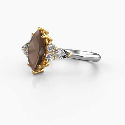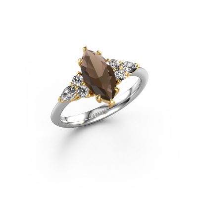 This 14 Carat white gold ring is called Melani MRQ and is set with 11x5.5 mm smokey quartz. What is it that makes your relationship unique? What is it about her that makes you want to bend down on one knee? The unique bond between the two of you is emphasized by an equally unique ring. A one of a kind graceful cluster engagement ring made especially for her. That is why this trendy ring fits her like a glove. Each specific detail of this graceful white gold smokey quartz set engagement ring is hand-picked, crafted and polished by our expert goldsmith. The result is an exquisite ring, unique and perfectly crafted to perfection. That is what our expert Goldsmiths strive for. This jewel is made just for you, with attention to detail and design.After receiving your order, our goldsmiths will passionately start the creative process of making your engagement ring in our own studio. Because we don't have a big stockpile, these costs will not be passed on to you. Our pricing is proof of that! We offer top quality jewels at lowest price, guaranteed.Do you have a specific ring in mind? One you came across somewhere. Please feel free to tell us your wishes and we will turn your design into a unique engagement ring. You can follow the development of your ring design because we use 3D drawings. This gives you a realistic preview of your design. We will gladly send you a non-binding offer, based on a fair price/ quality ratio. It will amaze you.To make it easier for you, we offer a 30 day return policy. Check our terms and conditions.