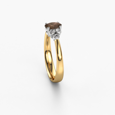 This 14 Carat gold ring is called Lucy 1 and is set with smokey quartz. How would you describe the style of the love of your life? Does she have a unique sense of style? This stunning beautiful gold engagement ring can be custom-made to your own or her liking. Our smokey quartz gemstones have been carefully selected because we believe your classic engagement ring must be adorned with nothing but the most beautiful gemstone. Don't you agree? This jewel is created to add sparkle to your finger, each jewel is lovingly made by hand by our goldsmiths.Because we design and deliver our own rings, we can offer you a engagement ring at a price you won't find anywhere else. A ring is made to order, which helps prevent excess supplies, so we can make you a great price offer. We understand it feels risky, buying your engagement ring online, but we will gladly assist in the designing process, taking your budget into consideration.Our team adds new designs to our online collection daily. Our designers and goldsmiths work together in creating the best design. We strive to offer a diverse collection of jewels. Perhaps you have a specific jewel design in mind. One you came across somewhere. Please contact us for a free consultation. We will make you an offer, based on a fair price/ quality ratio, that will baffle you.To make it easier for you, we offer a 30 day return policy. Check our terms and conditions.