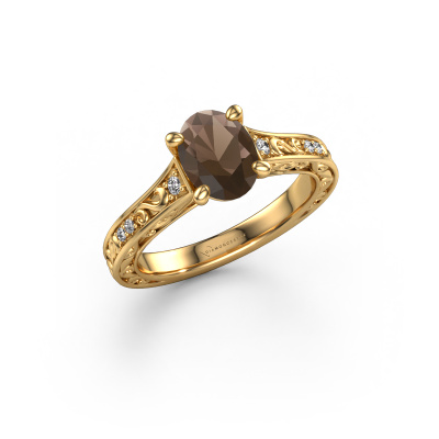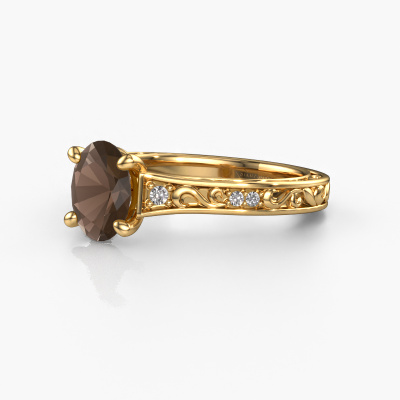 The ring shown above is called the Mallory ovl. We call this type of ring a pavé solitaire ring because it has one centre gemstone and a band that is also pave set with gemstones. This engagement ring is made in 14 Carat gold set with a 8x6 mm oval smokey quartz, and pave set lab-grown diamonds at the sides. Each piece of jewellery is made with passion and love by one of our master goldsmiths.This traditional gold pavé solitaire engagement ring has an exquisite oval smokey quartz centre stone. To further accentuate the centre stone, the band is set full with more lab-grown diamonds. Its open prong setting allows light to strike the smokey quartz from various angles and this adds sparkle to your smokey quartz ring. The photo shown above depicts the goldsmith's carefully handcrafted details of the ring. The high positioning of the centre stone is truly eye-catching. The perfect engagement ring for the crown jewel of your life!Are you on a budget? Please feel free to contact us, so we can go discuss your options. We offer our engagement rings at guaranteed best price, because we make them to order. You won't find such a price anywhere else!Our team adds new designs to our online collection daily. Our designers and goldsmiths work together in creating the best design. We strive to offer a diverse collection of jewels. Perhaps you have a specific jewel design in mind. One you came across somewhere. Please contact us for a free consultation. We will make you an offer, based on a fair price/ quality ratio, that will baffle you.To make it easier for you, we offer a 30 day return policy. Check our terms and conditions.