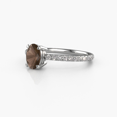 The ring shown above is called the Lynelle 2. We call this type of ring a pavé solitaire ring because it has one centre gemstone and a band that is also pave set with gemstones. This engagement ring is made in platinum set with a 7x5 mm oval smokey quartz, and pave set diamonds at the sides. Each piece of jewellery is created to add sparkle to your finger, each jewel is lovingly made by hand by our goldsmiths.This classic platinum pavé solitaire engagement ring has an exquisite oval smokey quartz centre stone. To further accentuate the centre stone, the band is set full with more diamonds. Its open prong setting allows light to strike the smokey quartz from various angles and this adds sparkle to your smokey quartz ring. The photo shown above depicts the goldsmith's carefully handcrafted details of the ring. The high positioning of the centre stone is truly eye-catching. The perfect engagement ring for the crown jewel of your life!After receiving your order, our goldsmiths will start the creative process of making your Lynelle 2 engagement ring. We don't keep stock. This is advantageous because these costs will not be passed on to you. Therefore, we can offer jewellery at exceptionally low prices.Do you have a specific ring in mind? One you came across somewhere. Please feel free to tell us your wishes and we will turn your design into a unique engagement ring. You can follow the development of your ring design because we use 3D drawings. This gives you a realistic preview of your design. We will gladly send you a non-binding offer, based on a fair price/ quality ratio. It will amaze you.To make it easier for you, we offer a 30 day return policy. Check our terms and conditions.