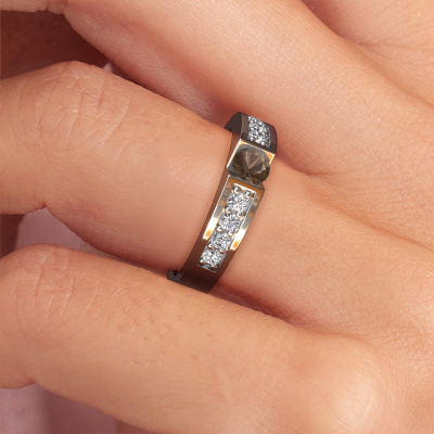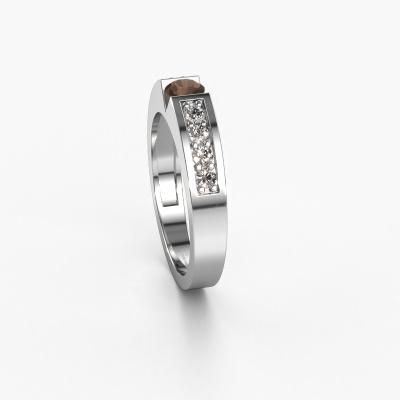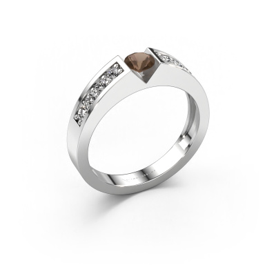 The ring shown above is called the Lizzy 2. We call this type of ring a pavé solitaire ring because it has one centre gemstone and a band that is also pave set with gemstones. This engagement ring is made in platinum set with a 4.2 mm round smokey quartz, and pave set diamonds at the sides. Each piece of jewellery is made to shine bright around your finger. Each jewel is hand made with love by our goldsmiths.This modern platinum pavé solitaire engagement ring has an exquisite round smokey quartz centre stone. To further accentuate the centre stone, the band is set full with more diamonds. Its open prong setting allows light to strike the smokey quartz from various angles and this adds sparkle to your smokey quartz ring. The photo shown above depicts the goldsmith's carefully handcrafted details of the ring. The high positioning of the centre stone is truly eye-catching. The perfect engagement ring for the crown jewel of your life!By using a combination of the latest modern techniques, combined with ancient crafting, we can make all our engagement rings in our own studio. Each jewel is made to order. This is advantageous because we can offer you a price you won't find anywhere else.Our team adds new designs to our online collection daily. Our designers and goldsmiths work together in creating the best design. We strive to offer a diverse collection of jewels. Perhaps you have a specific jewel design in mind. One you came across somewhere. Please contact us for a free consultation. We will make you an offer, based on a fair price/ quality ratio, that will baffle you.To make it easier for you, we offer a 30 day return policy. Check our terms and conditions.