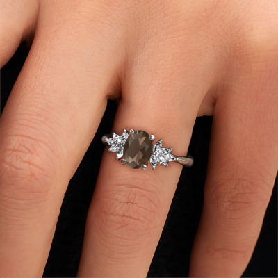 This 14 Carat white gold ring is called Fiona OVL and is set with smokey quartz. How would you describe the style of the love of your life? Does she have a unique sense of style? This stunning beautiful white gold engagement ring can be custom-made to your own or her liking. Our smokey quartz gemstones have been carefully selected because we believe your unique engagement ring must be adorned with nothing but the most beautiful gemstone. Don't you agree? This jewel is made just for you, with attention to detail and design.By using a combination of the latest modern techniques, combined with ancient crafting, we can make all our engagement rings in our own studio. Each jewel is made to order. This is advantageous because we can offer you a price you won't find anywhere else.Our designers and goldsmiths work together each day, creating new jewels. Perhaps you have found a nice unique engagement ring somewhere, which can be used to customize your unique ring. Please feel free to contact us. We will make you an offer, based on a fair price/ quality ratio, which will amaze you.To make it easier for you, we offer a 30 day return policy. Check our terms and conditions.