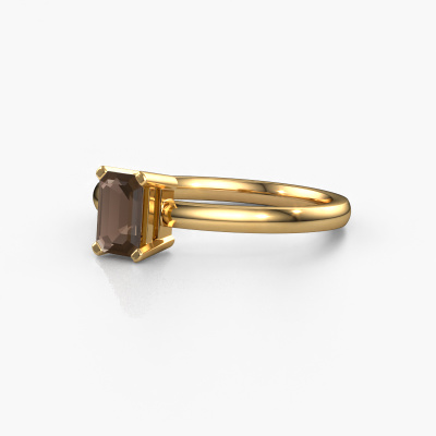 The ring shown above is called the Denita 1 EME, we call this a solitaire ring because it contains a single gemstone. The engagement ring is made in 14 Carat gold and has a emerald cut smokey quartz of 6x4 mm. The cool thing about our configurator is that you can compile your own piece of jewellery, into a completely personalized one. This solitaire ring is crafted in the precious metals gold with gold, but of course you are free to pick your own colours. Each piece of jewellery is made by a team of passionate goldsmiths and jewel designers. This will make your crown jewel truly eye-catching.The solitaire ring is a special type of engagement ring. Its open prong setting allows light to strike the gemstone from various angles. This contemporary engagement ring is a stunning eye-catcher because of the high positioning of the gemstone. In order for you to commemorate your proposal with a unique ring, we carefully adorn this solitaire ring by hand. The love of your life deserves nothing but the best. By using a combination of the latest modern techniques, combined with ancient crafting, we can make all our engagement rings in our own studio. Each jewel is made to order. This is advantageous because we can offer you a price you won't find anywhere else.Our team adds new designs to our online collection daily. Our designers and goldsmiths work together in creating the best design. We strive to offer a diverse collection of jewels. Perhaps you have a specific jewel design in mind. One you came across somewhere. Please contact us for a free consultation. We will make you an offer, based on a fair price/ quality ratio, that will baffle you.To make it easier for you, we offer a 30 day return policy. Check our terms and conditions.