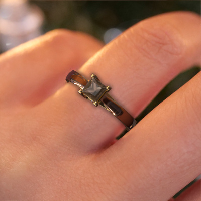 The ring shown above is called the Mia Square, we call this a solitaire ring because it contains a single gemstone. The engagement ring is made in 14 Carat rose gold and has a princess smokey quartz of 4 mm. The cool thing about our configurator is that you can compile your own piece of jewellery, into a completely personalized one. This solitaire ring is crafted in the precious metals rose gold with gold, but of course you are free to pick your own colours. Each piece of jewellery is made by a team of passionate goldsmiths and jewel designers. This will make your crown jewel truly eye-catching.The solitaire ring is a special type of engagement ring. Its open prong setting allows light to strike the gemstone from various angles. This modern engagement ring is a stunning eye-catcher because of the high positioning of the gemstone. In order for you to commemorate your proposal with a unique ring, we carefully adorn this solitaire ring by hand. The love of your life deserves nothing but the best. By using our modern techniques, we can design and customize the finest quality jewels with the utmost care for you. Our engagement rings are always priced 30 percent lower than other jewellers. We make engagement rings to order so we don't have to maintain a large stock. If you have a certain budget, we are more than happy to advice you accordingly.Have you found a specific engagement ring somewhere which you would like to give to your loved one? Please feel free to express your wishes to our jewel designers because we would be honoured to turn your design into a modern engagement ring. You can follow the development of your ring design because we use 3D drawings. This gives you a realistic preview of how your design will look. You can also preorder a dummy. A dummy is a plastic ring, which can be shaped according your ring design. You can try it on and check if its width and size are suitable for you. We will gladly send you a non-binding offer, based on a fair price/ quality ratio. It will amaze you, considering the quality of the ring and gemstones.To make it easier for you, we offer a 30 day return policy. Check our terms and conditions.