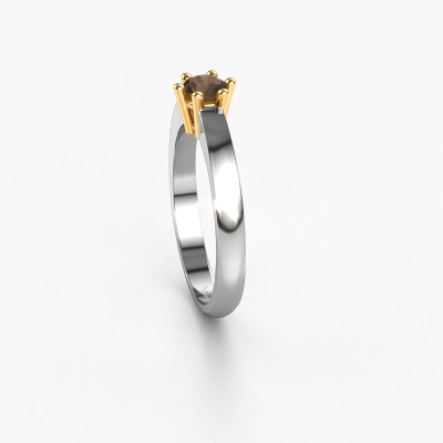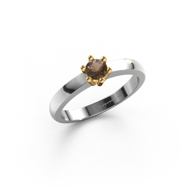 The ring shown above is called the Luna 1, we call this a solitaire ring because it contains a single gemstone. The engagement ring is made in 14 Carat white gold and has a round smokey quartz of 3.7 mm. The cool thing about our configurator is that you can compile your own piece of jewellery, into a completely personalized one. This solitaire ring is crafted in the precious metals white gold with gold, but of course you are free to pick your own colours. Each piece of jewellery is made with passion and love by one of our master goldsmiths.The solitaire ring is a special type of engagement ring. Its open prong setting allows light to strike the gemstone from various angles. This classic engagement ring is a stunning eye-catcher because of the high positioning of the gemstone. In order for you to commemorate your proposal with a unique ring, we carefully adorn this solitaire ring by hand. The love of your life deserves nothing but the best. After receiving your order, our goldsmiths will start the creative process of making your Luna 1 engagement ring. We don't keep stock. This is advantageous because these costs will not be passed on to you. Therefore, we can offer jewellery at exceptionally low prices.Our designers and goldsmiths work together each day, creating new jewels. Perhaps you have found a nice classic engagement ring somewhere, which can be used to customize your unique ring. Please feel free to contact us. We will make you an offer, based on a fair price/ quality ratio, which will amaze you.To make it easier for you, we offer a 30 day return policy. Check our terms and conditions.