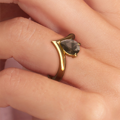 In your eyes, no one else compares to her. She is one in a million, unlike anyone else and pure? These qualities are emphasized perfectly by our modern gold solitaire smokey quartz ring. This smokey quartz is carefully selected by our keen artisan goldsmiths. It equals the unique qualities of the love of your life. There is no better way to memorialize your proposal than this symbol of true love. The ring shown above is called the Maddy PER, we call this a solitaire ring because it contains a single gemstone. The engagement ring is made in 14 Carat gold and has a pear smokey quartz of 8x6 mm. Each piece of jewellery is made with passion and love by one of our master goldsmiths.After receiving your order, our goldsmiths will passionately start the creative process of making your engagement ring in our own studio. Because we don't have a big stockpile, these costs will not be passed on to you. Our pricing is proof of that! We offer top quality jewels at lowest price, guaranteed.Our team adds new designs to our online collection daily. Our designers and goldsmiths work together in creating the best design. We strive to offer a diverse collection of jewels. Perhaps you have a specific jewel design in mind. One you came across somewhere. Please contact us for a free consultation. We will make you an offer, based on a fair price/ quality ratio, that will baffle you.To make it easier for you, we offer a 30 day return policy. Check our terms and conditions.
