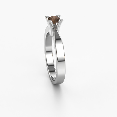 In your eyes, no one else compares to her. She is one in a million, unlike anyone else and pure? These qualities are emphasized perfectly by our traditional white gold solitaire smokey quartz ring. This smokey quartz is carefully selected by our keen artisan goldsmiths. It equals the unique qualities of the love of your life. There is no better way to memorialize your proposal than this symbol of true love. The ring shown above is called the Ichelle 1, we call this a solitaire ring because it contains a single gemstone. The engagement ring is made in 14 Carat white gold and has a round smokey quartz of 4.2 mm. Each piece of jewellery is made with passion and love by one of our master goldsmiths.After receiving your order, our goldsmiths will start the creative process of making your Ichelle 1 engagement ring. We don't keep stock. This is advantageous because these costs will not be passed on to you. Therefore, we can offer jewellery at exceptionally low prices.Have you found a specific engagement ring somewhere which you would like to give to your loved one? Please feel free to express your wishes to our jewel designers because we would be honoured to turn your design into a traditional engagement ring. You can follow the development of your ring design because we use 3D drawings. This gives you a realistic preview of how your design will look. You can also preorder a dummy. A dummy is a plastic ring, which can be shaped according your ring design. You can try it on and check if its width and size are suitable for you. We will gladly send you a non-binding offer, based on a fair price/ quality ratio. It will amaze you, considering the quality of the ring and gemstones.To make it easier for you, we offer a 30 day return policy. Check our terms and conditions.