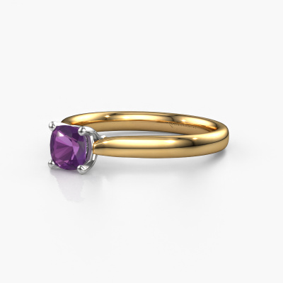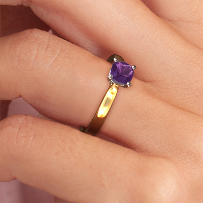 This 14 Carat gold ring is called Mignon cus 1 and is set with 5 mm amethyst. This exclusive gold solitaire engagement ring is a true work of art! The ornaments are crafted with a lot of patience and great passion. In order to create this ring with great precision, this craft requires a keen eye and skilful hand. A challenge which ignites a fire in our expert goldsmith. The exquisite amethysten are set in a special way so they stand out even more. This gives the ring an even more glamorous appearance. The edgy engagement ring is actually unique on its own because of the gemstones which we carefully select especially for this ring. On top of that you select the precious metals which will be used to create a unique ring for the most extraordinary woman in your life! This jewel is made by a team of passionate goldsmiths and jewel designers. This will make your crown jewel truly eye-catching.Are you on a budget? Please feel free to contact us, so we can go discuss your options. We offer our engagement rings at guaranteed best price, because we make them to order. You won't find such a price anywhere else!Different styles of new rings are made daily by our team. Perhaps you have found a solitaire engagement ring somewhere. One you would like to give to your loved one. Please feel free to share your thoughts and design with our jewel designers. We would love to turn your design into a luxury engagement ring. You can follow the development of your ring design because we use very detailed 3D drawings. On top of that, you can order a dummy of the design. A dummy is a plastic ring, which can be shaped according your ring design. You can try it on and check if the engagement ring is up to standard. We will gladly send you a non-binding offer, based on a fair price/ quality ratio. The offer will baffle you, considering the quality of the ring and gemstones.To make it easier for you, we offer a 30 day return policy. Check our terms and conditions.