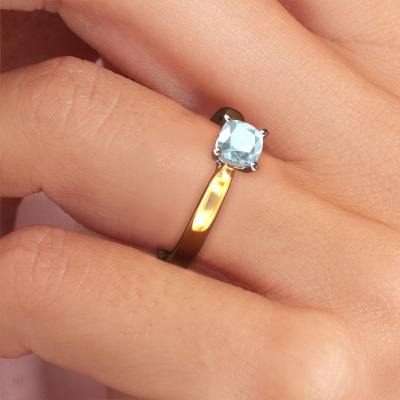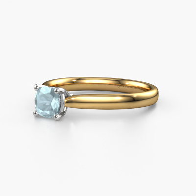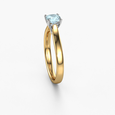 This 14 Carat gold ring is called Mignon cus 1 and is set with 5 mm aquamarine. This exclusive gold solitaire engagement ring is a true work of art! The ornaments are crafted with a lot of patience and great passion. In order to create this ring with great precision, this craft requires a keen eye and skilful hand. A challenge which ignites a fire in our expert goldsmith. The exquisite aquamarine are set in a special way so they stand out even more. This gives the ring an even more glamorous appearance. The edgy engagement ring is actually unique on its own because of the gemstones which we carefully select especially for this ring. On top of that you select the precious metals which will be used to create a unique ring for the most extraordinary woman in your life! This jewel is made by a team of passionate goldsmiths and jewel designers. This will make your crown jewel truly eye-catching.Are you on a budget? Please feel free to contact us, so we can go discuss your options. We offer our engagement rings at guaranteed best price, because we make them to order. You won't find such a price anywhere else!Different styles of new rings are made daily by our team. Perhaps you have found a solitaire engagement ring somewhere. One you would like to give to your loved one. Please feel free to share your thoughts and design with our jewel designers. We would love to turn your design into a luxury engagement ring. You can follow the development of your ring design because we use very detailed 3D drawings. On top of that, you can order a dummy of the design. A dummy is a plastic ring, which can be shaped according your ring design. You can try it on and check if the engagement ring is up to standard. We will gladly send you a non-binding offer, based on a fair price/ quality ratio. The offer will baffle you, considering the quality of the ring and gemstones.To make it easier for you, we offer a 30 day return policy. Check our terms and conditions.