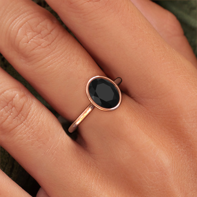 This 14 Carat rose gold ring is called Lavon OVL and is set with 2.16 crt black diamond. This exclusive rose gold solitaire engagement ring is a true work of art! The ornaments are crafted with a lot of patience and great passion. In order to create this ring with great precision, this craft requires a keen eye and skilful hand. A challenge which ignites a fire in our expert goldsmith. The exquisite black diamonds are set in a special way so they stand out even more. This gives the ring an even more glamorous appearance. The edgy engagement ring is actually unique on its own because of the gemstones which we carefully select especially for this ring. On top of that you select the precious metals which will be used to create a unique ring for the most extraordinary woman in your life! This jewel is created to add sparkle to your finger, each jewel is lovingly made by hand by our goldsmiths.By using our modern techniques, we can design and customize the finest quality jewels with the utmost care for you. Our engagement rings are always priced 30 percent lower than other jewellers. We make engagement rings to order so we don't have to maintain a large stock. If you have a certain budget, we are more than happy to advice you accordingly.Our team adds new designs to our online collection daily. Our designers and goldsmiths work together in creating the best design. We strive to offer a diverse collection of jewels. Perhaps you have a specific jewel design in mind. One you came across somewhere. Please contact us for a free consultation. We will make you an offer, based on a fair price/ quality ratio, that will baffle you.To make it easier for you, we offer a 30 day return policy. Check our terms and conditions.