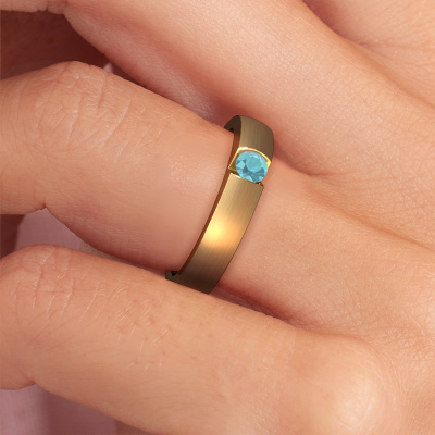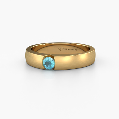 This 14 Carat gold ring is called Theresia and is set with 3.4 mm blue topaz. The tension setting is what makes this a special engagement ring because it emphasizes the blue topaz. Our expert goldsmith uses special techniques to set the blue topaz in this gold ring. By using these techniques, light reflects freely. This gives the ring its maximum shine and a glamorous appearance. A true work of art! The result is a unique ring, with a trendy appearance, passionately handcrafted to perfection by our expert goldsmith. A one-of-a-kind ring, designed for the love of your life. We recommend a solid gemstone, such as a diamond or sapphire, if you select this ring. The ring must be able to endure a lot of pressure during manufacturing. This piece of jewelry is made just for you by our master goldsmiths in our own studio.By using our modern techniques, we can design and customize the finest quality jewels with the utmost care for you. Our engagement rings are always priced 30 percent lower than other jewellers. We make engagement rings to order so we don't have to maintain a large stock. If you have a certain budget, we are more than happy to advice you accordingly.Different styles of new rings are made daily by our team. Perhaps you have found a solitaire engagement ring somewhere. One you would like to give to your loved one. Please feel free to share your thoughts and design with our jewel designers. We would love to turn your design into a modern engagement ring. You can follow the development of your ring design because we use very detailed 3D drawings. On top of that, you can order a dummy of the design. A dummy is a plastic ring, which can be shaped according your ring design. You can try it on and check if the engagement ring is up to standard. We will gladly send you a non-binding offer, based on a fair price/ quality ratio. The offer will baffle you, considering the quality of the ring and gemstones.To make it easier for you, we offer a 30 day return policy. Check our terms and conditions.