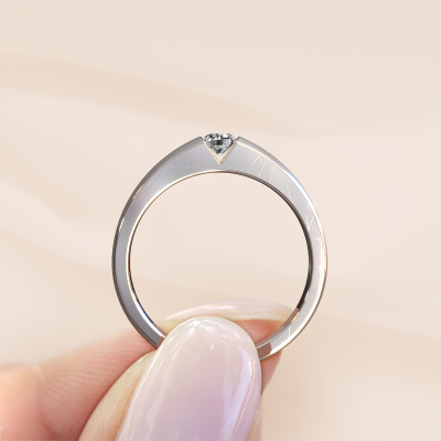 This platinum ring is called Theresia and is set with 3.4 mm custom diamond. The tension setting is what makes this a special engagement ring because it emphasizes the custom diamond. Our expert goldsmith uses special techniques to set the custom diamond in this platinum ring. By using these techniques, light reflects freely. This gives the ring its maximum shine and a glamorous appearance. A true work of art! The result is a unique ring, with a trendy appearance, passionately handcrafted to perfection by our expert goldsmith. A one-of-a-kind ring, designed for the love of your life. We recommend a solid gemstone, such as a diamond or sapphire, if you select this ring. The ring must be able to endure a lot of pressure during manufacturing. This piece of jewelry is made just for you by our master goldsmiths in our own studio.By using our modern techniques, we can design and customize the finest quality jewels with the utmost care for you. Our engagement rings are always priced 30 percent lower than other jewellers. We make engagement rings to order so we don't have to maintain a large stock. If you have a certain budget, we are more than happy to advice you accordingly.Different styles of new rings are made daily by our team. Perhaps you have found a solitaire engagement ring somewhere. One you would like to give to your loved one. Please feel free to share your thoughts and design with our jewel designers. We would love to turn your design into a modern engagement ring. You can follow the development of your ring design because we use very detailed 3D drawings. On top of that, you can order a dummy of the design. A dummy is a plastic ring, which can be shaped according your ring design. You can try it on and check if the engagement ring is up to standard. We will gladly send you a non-binding offer, based on a fair price/ quality ratio. The offer will baffle you, considering the quality of the ring and gemstones.To make it easier for you, we offer a 30 day return policy. Check our terms and conditions.