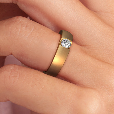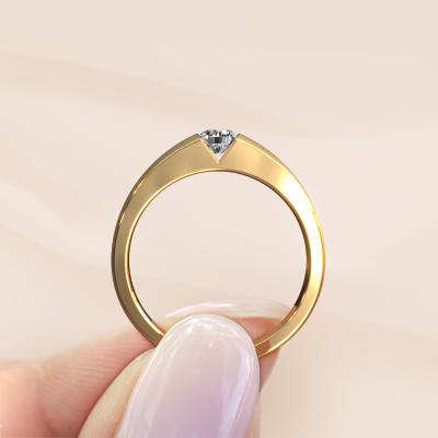 This 14 Carat gold ring is called Theresia and is set with 0.30 crt diamond. The tension setting is what makes this a special engagement ring because it emphasizes the diamond. Our expert goldsmith uses special techniques to set the diamond in this gold ring. By using these techniques, light reflects freely. This gives the ring its maximum shine and a glamorous appearance. A true work of art! The result is a unique ring, with a trendy appearance, passionately handcrafted to perfection by our expert goldsmith. A one-of-a-kind ring, designed for the love of your life. We recommend a solid gemstone, such as a diamond or sapphire, if you select this ring. The ring must be able to endure a lot of pressure during manufacturing. This piece of jewelry is made just for you by our master goldsmiths in our own studio.By using our modern techniques, we can design and customize the finest quality jewels with the utmost care for you. Our engagement rings are always priced 30 percent lower than other jewellers. We make engagement rings to order so we don't have to maintain a large stock. If you have a certain budget, we are more than happy to advice you accordingly.Different styles of new rings are made daily by our team. Perhaps you have found a solitaire engagement ring somewhere. One you would like to give to your loved one. Please feel free to share your thoughts and design with our jewel designers. We would love to turn your design into a modern engagement ring. You can follow the development of your ring design because we use very detailed 3D drawings. On top of that, you can order a dummy of the design. A dummy is a plastic ring, which can be shaped according your ring design. You can try it on and check if the engagement ring is up to standard. We will gladly send you a non-binding offer, based on a fair price/ quality ratio. The offer will baffle you, considering the quality of the ring and gemstones.To make it easier for you, we offer a 30 day return policy. Check our terms and conditions.