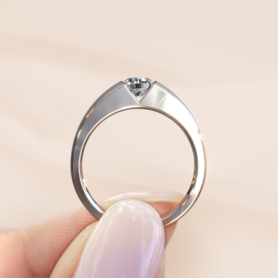 This platinum ring is called Theresia and is set with 0.40 crt diamond. The tension setting is what makes this a special engagement ring because it emphasizes the diamond. Our expert goldsmith uses special techniques to set the diamond in this platinum ring. By using these techniques, light reflects freely. This gives the ring its maximum shine and a glamorous appearance. A true work of art! The result is a unique ring, with a trendy appearance, passionately handcrafted to perfection by our expert goldsmith. A one-of-a-kind ring, designed for the love of your life. We recommend a solid gemstone, such as a diamond or sapphire, if you select this ring. The ring must be able to endure a lot of pressure during manufacturing. This piece of jewelry is made just for you by our master goldsmiths in our own studio.By using our modern techniques, we can design and customize the finest quality jewels with the utmost care for you. Our engagement rings are always priced 30 percent lower than other jewellers. We make engagement rings to order so we don't have to maintain a large stock. If you have a certain budget, we are more than happy to advice you accordingly.Different styles of new rings are made daily by our team. Perhaps you have found a solitaire engagement ring somewhere. One you would like to give to your loved one. Please feel free to share your thoughts and design with our jewel designers. We would love to turn your design into a modern engagement ring. You can follow the development of your ring design because we use very detailed 3D drawings. On top of that, you can order a dummy of the design. A dummy is a plastic ring, which can be shaped according your ring design. You can try it on and check if the engagement ring is up to standard. We will gladly send you a non-binding offer, based on a fair price/ quality ratio. The offer will baffle you, considering the quality of the ring and gemstones.To make it easier for you, we offer a 30 day return policy. Check our terms and conditions.