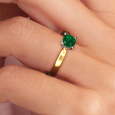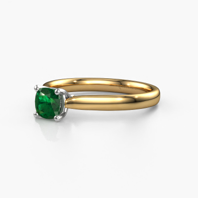 This 14 Carat gold ring is called Mignon cus 1 and is set with 5 mm emerald. This exclusive gold solitaire engagement ring is a true work of art! The ornaments are crafted with a lot of patience and great passion. In order to create this ring with great precision, this craft requires a keen eye and skilful hand. A challenge which ignites a fire in our expert goldsmith. The exquisite emerald are set in a special way so they stand out even more. This gives the ring an even more glamorous appearance. The edgy engagement ring is actually unique on its own because of the gemstones which we carefully select especially for this ring. On top of that you select the precious metals which will be used to create a unique ring for the most extraordinary woman in your life! This jewel is made by a team of passionate goldsmiths and jewel designers. This will make your crown jewel truly eye-catching.Are you on a budget? Please feel free to contact us, so we can go discuss your options. We offer our engagement rings at guaranteed best price, because we make them to order. You won't find such a price anywhere else!Different styles of new rings are made daily by our team. Perhaps you have found a solitaire engagement ring somewhere. One you would like to give to your loved one. Please feel free to share your thoughts and design with our jewel designers. We would love to turn your design into a luxury engagement ring. You can follow the development of your ring design because we use very detailed 3D drawings. On top of that, you can order a dummy of the design. A dummy is a plastic ring, which can be shaped according your ring design. You can try it on and check if the engagement ring is up to standard. We will gladly send you a non-binding offer, based on a fair price/ quality ratio. The offer will baffle you, considering the quality of the ring and gemstones.To make it easier for you, we offer a 30 day return policy. Check our terms and conditions.