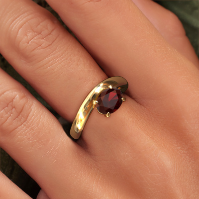 This 14 Carat gold ring is called Floor OVL and is set with garnet. Do you keep up with the latest fashion trends? Do you want a unique engagement ring that matches your lifestyle? This twist engagement ring is an extraordinary ring which can be