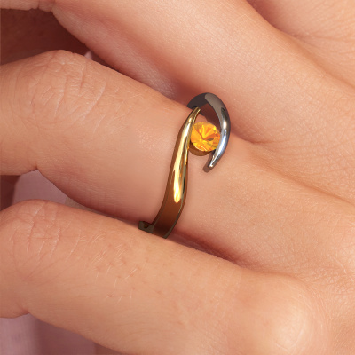 This 14 Carat gold ring is called Alaina and is set with citrin. Do you keep up with the latest fashion trends? Do you want a unique engagement ring that matches your lifestyle? This graceful engagement ring is an extraordinary ring which can be custom-made to fit your or her personal style. This modern gold engagement ring is set with citrin. Our citrin are carefully selected for this specific ring in order to create the best effect. Our expert goldsmith will create your ring in our own artisan studio where the citrin will be set with great care. The ring will then be polished to perfection. Nothing but the best for the love of your life! This jewel is unique in every way! Simply customize to your likingBy using our modern techniques, we can design and customize the finest quality jewels with the utmost care for you. Our engagement rings are always priced 30 percent lower than other jewellers. We make engagement rings to order so we don't have to maintain a large stock. If you have a certain budget, we are more than happy to advice you accordingly.Our team adds new designs to our online collection daily. Our designers and goldsmiths work together in creating the best design. We strive to offer a diverse collection of jewels. Perhaps you have a specific jewel design in mind. One you came across somewhere. Please contact us for a free consultation. We will make you an offer, based on a fair price/ quality ratio, that will baffle you.To make it easier for you, we offer a 30 day return policy. Check our terms and conditions.