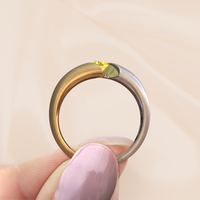 This 14 Carat gold ring is called Hojalien 1 and is set with yellow sapphire. Do you keep up with the latest fashion trends? Do you want a unique engagement ring that matches your lifestyle? This orb shaped engagement ring is an extraordinary ring which can be custom-made to fit your or her personal style. This modern gold engagement ring is set with yellow sapphire. Our yellow sapphire are carefully selected for this specific ring in order to create the best effect. Our expert goldsmith will create your ring in our own artisan studio where the yellow sapphire will be set with great care. The ring will then be polished to perfection. Nothing but the best for the love of your life! This jewel is created to add sparkle to your finger, each jewel is lovingly made by hand by our goldsmiths.After receiving your order, our goldsmiths will passionately start the creative process of making your engagement ring in our own studio. Because we don't have a big stockpile, these costs will not be passed on to you. Our pricing is proof of that! We offer top quality jewels at lowest price, guaranteed.Different styles of new rings are made daily by our team. Perhaps you have found a solitaire engagement ring somewhere. One you would like to give to your loved one. Please feel free to share your thoughts and design with our jewel designers. We would love to turn your design into a modern engagement ring. You can follow the development of your ring design because we use very detailed 3D drawings. On top of that, you can order a dummy of the design. A dummy is a plastic ring, which can be shaped according your ring design. You can try it on and check if the engagement ring is up to standard. We will gladly send you a non-binding offer, based on a fair price/ quality ratio. The offer will baffle you, considering the quality of the ring and gemstones.To make it easier for you, we offer a 30 day return policy. Check our terms and conditions.