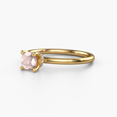 The ring shown above is called the Crystal CUS 3, we call this a solitaire ring because it contains a single gemstone. The engagement ring is made in 14 Carat gold and has a cushion morganite champagne of 5 mm. This fashionable gold solitaire ring with exquisite cushion morganite champagne is a beautiful engagement ring. The open prong setting allows light to strike the gemstone from various angles. The ring also stands out because of the high positioning of the gemstone. Because diamonds symbolize true love and purity, they make the perfect gift for the love of your life. The symbol of eternal love is the centerpiece of this solitaire ring. Like a diamond, all other types of precious metal have their own attributed symbolic meaning. You can compile the solitaire engagement ring yourself in various precious metal combinations. This one has the combination of 14 Carat gold with gold. Each piece of jewelry is made by a team of passionate goldsmiths and jewel designers. This will make your crown jewel truly eye-catching.By using a combination of the latest modern techniques, combined with ancient crafting, we can make all our engagement rings in our own studio. Each jewel is made to order. This is advantageous because we can offer you a price you won't find anywhere else.Our designers and goldsmiths work together each day, creating new jewels. Perhaps you have found a nice fashionable engagement ring somewhere, which can be used to customize your unique ring. Please feel free to contact us. We will make you an offer, based on a fair price/ quality ratio, which will amaze you.To make it easier for you, we offer a 30 day return policy. Check our terms and conditions.