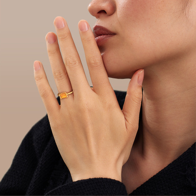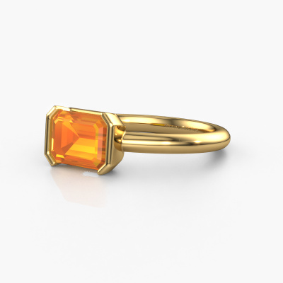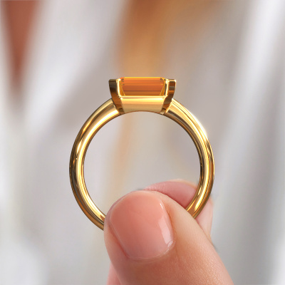 The ring shown above is called the Tayler EME, we call this a solitaire ring because it contains a single gemstone. The engagement ring is made in 14 Carat gold and has a emerald cut citrin of 8x6 mm. This modern gold solitaire ring with exquisite emerald cut citrin is a beautiful engagement ring. The open prong setting allows light to strike the gemstone from various angles. The ring also stands out because of the high positioning of the gemstone. Because diamonds symbolize true love and purity, they make the perfect gift for the love of your life. The symbol of eternal love is the centerpiece of this solitaire ring. Like a diamond, all other types of precious metal have their own attributed symbolic meaning. You can compile the solitaire engagement ring yourself in various precious metal combinations. This one has the combination of 14 Carat gold with gold. Each piece of jewelry is created to add sparkle to your finger, each jewel is lovingly made by hand by our goldsmiths.After receiving your order, our goldsmiths will passionately start the creative process of making your engagement ring in our own studio. Because we don't have a big stockpile, these costs will not be passed on to you. Our pricing is proof of that! We offer top quality jewels at lowest price, guaranteed.Our designers and goldsmiths work together each day, creating new jewels. Perhaps you have found a nice modern engagement ring somewhere, which can be used to customize your unique ring. Please feel free to contact us. We will make you an offer, based on a fair price/ quality ratio, which will amaze you.To make it easier for you, we offer a 30 day return policy. Check our terms and conditions.