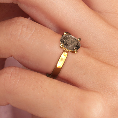 The ring shown above is called the Mignon ovl 1, we call this a solitaire ring because it contains a single gemstone. The engagement ring is made in 14 Carat gold and has a oval brown diamond of 1.10 crt. This traditional gold solitaire ring with exquisite oval brown diamond is a beautiful engagement ring. The open prong setting allows light to strike the gemstone from various angles. The ring also stands out because of the high positioning of the gemstone. Because diamonds symbolize true love and purity, they make the perfect gift for the love of your life. The symbol of eternal love is the centerpiece of this solitaire ring. Like a diamond, all other types of precious metal have their own attributed symbolic meaning. You can compile the solitaire engagement ring yourself in various precious metal combinations. This one has the combination of 14 Carat gold with gold. Each piece of jewelry is made by a team of passionate goldsmiths and jewel designers. This will make your crown jewel truly eye-catching.By using a combination of the latest modern techniques, combined with ancient crafting, we can make all our engagement rings in our own studio. Each jewel is made to order. This is advantageous because we can offer you a price you won't find anywhere else.Our designers and goldsmiths work together each day, creating new jewels. Perhaps you have found a nice traditional engagement ring somewhere, which can be used to customize your unique ring. Please feel free to contact us. We will make you an offer, based on a fair price/ quality ratio, which will amaze you.To make it easier for you, we offer a 30 day return policy. Check our terms and conditions.