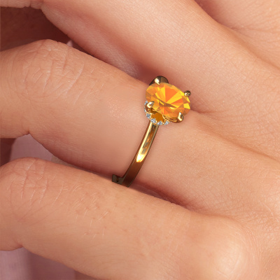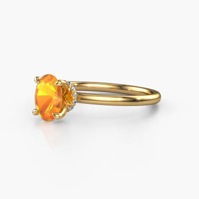 The ring shown above is called the Crystal OVL 3, we call this a solitaire ring because it contains a single gemstone. The engagement ring is made in 14 Carat gold and has a oval citrin of 7,5x5,5 mm. This unique gold solitaire ring with exquisite oval citrin is a beautiful engagement ring. The open prong setting allows light to strike the gemstone from various angles. The ring also stands out because of the high positioning of the gemstone. Because diamonds symbolize true love and purity, they make the perfect gift for the love of your life. The symbol of eternal love is the centerpiece of this solitaire ring. Like a diamond, all other types of precious metal have their own attributed symbolic meaning. You can compile the solitaire engagement ring yourself in various precious metal combinations. This one has the combination of 14 Carat gold with gold. Each piece of jewelry is made just for you by our master goldsmiths in our own studio.After receiving your order, our goldsmiths will passionately start the creative process of making your engagement ring in our own studio. Because we don't have a big stockpile, these costs will not be passed on to you. Our pricing is proof of that! We offer top quality jewels at lowest price, guaranteed.Our designers and goldsmiths work together each day, creating new jewels. Perhaps you have found a nice unique engagement ring somewhere, which can be used to customize your unique ring. Please feel free to contact us. We will make you an offer, based on a fair price/ quality ratio, which will amaze you.To make it easier for you, we offer a 30 day return policy. Check our terms and conditions.