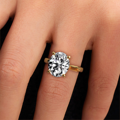 The ring shown above is called the Mignon OVL 1, we call this a solitaire ring because it contains a single gemstone. The engagement ring is made in 14 Carat gold and has a oval lab grown diamond of 5.05 crt. This traditional gold solitaire ring with exquisite oval lab grown diamond is a beautiful engagement ring. The open prong setting allows light to strike the gemstone from various angles. The ring also stands out because of the high positioning of the gemstone. Because diamonds symbolize true love and purity, they make the perfect gift for the love of your life. The symbol of eternal love is the centerpiece of this solitaire ring. Like a diamond, all other types of precious metal have their own attributed symbolic meaning. You can compile the solitaire engagement ring yourself in various precious metal combinations. This one has the combination of 14 Carat gold with gold. Each piece of jewelry is made by a team of passionate goldsmiths and jewel designers. This will make your crown jewel truly eye-catching.By using a combination of the latest modern techniques, combined with ancient crafting, we can make all our engagement rings in our own studio. Each jewel is made to order. This is advantageous because we can offer you a price you won't find anywhere else.Our designers and goldsmiths work together each day, creating new jewels. Perhaps you have found a nice traditional engagement ring somewhere, which can be used to customize your unique ring. Please feel free to contact us. We will make you an offer, based on a fair price/ quality ratio, which will amaze you.To make it easier for you, we offer a 30 day return policy. Check our terms and conditions.