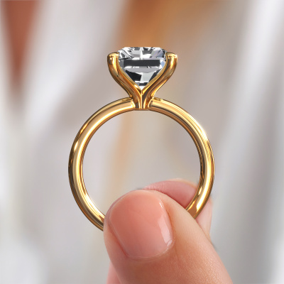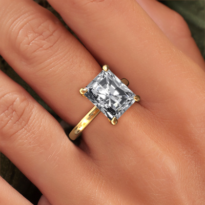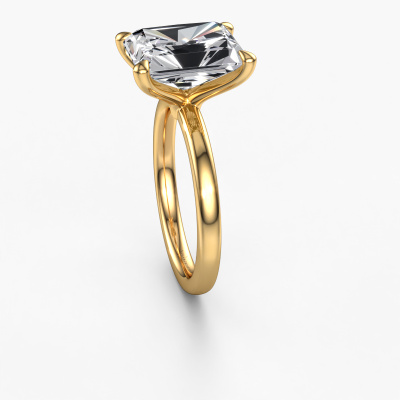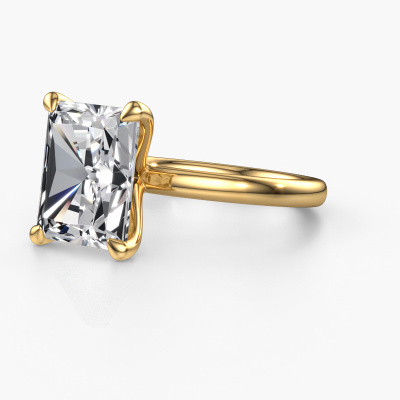 The ring shown above is called the Crystal RAD 1, we call this a solitaire ring because it contains a single gemstone. The engagement ring is made in 14 Carat gold and has a radiant lab grown diamond of 5.05 crt. This modern gold solitaire ring with exquisite radiant lab grown diamond is a beautiful engagement ring. The open prong setting allows light to strike the gemstone from various angles. The ring also stands out because of the high positioning of the gemstone. Because diamonds symbolize true love and purity, they make the perfect gift for the love of your life. The symbol of eternal love is the centerpiece of this solitaire ring. Like a diamond, all other types of precious metal have their own attributed symbolic meaning. You can compile the solitaire engagement ring yourself in various precious metal combinations. This one has the combination of 14 Carat gold with gold. Each piece of jewelry is made by a team of passionate goldsmiths and jewel designers. This will make your crown jewel truly eye-catching.After receiving your order, our goldsmiths will passionately start the creative process of making your engagement ring in our own studio. Because we don't have a big stockpile, these costs will not be passed on to you. Our pricing is proof of that! We offer top quality jewels at lowest price, guaranteed.Have you found a specific engagement ring somewhere which you would like to give to your loved one? Please feel free to express your wishes to our jewel designers because we would be honoured to turn your design into a modern engagement ring. You can follow the development of your ring design because we use 3D drawings. This gives you a realistic preview of how your design will look. You can also preorder a dummy. A dummy is a plastic ring, which can be shaped according your ring design. You can try it on and check if its width and size are suitable for you. We will gladly send you a non-binding offer, based on a fair price/ quality ratio. It will amaze you, considering the quality of the ring and gemstones.To make it easier for you, we offer a 30 day return policy. Check our terms and conditions.