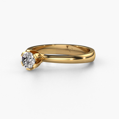 The ring shown above is called the Julia, we call this a solitaire ring because it contains a single gemstone. The engagement ring is made in 14 Carat gold and has a round diamond of 0.30 crt. This trendy gold solitaire ring with exquisite round diamond is a beautiful engagement ring. The open prong setting allows light to strike the gemstone from various angles. The ring also stands out because of the high positioning of the gemstone. Because diamonds symbolize true love and purity, they make the perfect gift for the love of your life. The symbol of eternal love is the centerpiece of this solitaire ring. Like a diamond, all other types of precious metal have their own attributed symbolic meaning. You can compile the solitaire engagement ring yourself in various precious metal combinations. This one has the combination of 14 Carat gold with gold. Each piece of jewelry is created to add sparkle to your finger, each jewel is lovingly made by hand by our goldsmiths.Are you on a budget? Please feel free to contact us, so we can go discuss your options. We offer our engagement rings at guaranteed best price, because we make them to order. You won't find such a price anywhere else!Different styles of new rings are made daily by our team. Perhaps you have found a solitaire engagement ring somewhere. One you would like to give to your loved one. Please feel free to share your thoughts and design with our jewel designers. We would love to turn your design into a trendy engagement ring. You can follow the development of your ring design because we use very detailed 3D drawings. On top of that, you can order a dummy of the design. A dummy is a plastic ring, which can be shaped according your ring design. You can try it on and check if the engagement ring is up to standard. We will gladly send you a non-binding offer, based on a fair price/ quality ratio. The offer will baffle you, considering the quality of the ring and gemstones.To make it easier for you, we offer a 30 day return policy. Check our terms and conditions.