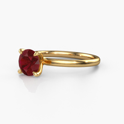 The ring shown above is called the Crystal RND 1, we call this a solitaire ring because it contains a single gemstone. The engagement ring is made in 14 Carat gold and has a round ruby of 6.8 mm. This classic gold solitaire ring with exquisite round ruby is a beautiful engagement ring. The open prong setting allows light to strike the gemstone from various angles. The ring also stands out because of the high positioning of the gemstone. Because diamonds symbolize true love and purity, they make the perfect gift for the love of your life. The symbol of eternal love is the centerpiece of this solitaire ring. Like a diamond, all other types of precious metal have their own attributed symbolic meaning. You can compile the solitaire engagement ring yourself in various precious metal combinations. This one has the combination of 14 Carat gold with gold. Each piece of jewelry is made by a team of passionate goldsmiths and jewel designers. This will make your crown jewel truly eye-catching.After receiving your order, our goldsmiths will passionately start the creative process of making your engagement ring in our own studio. Because we don't have a big stockpile, these costs will not be passed on to you. Our pricing is proof of that! We offer top quality jewels at lowest price, guaranteed.Do you have a specific ring in mind? One you came across somewhere. Please feel free to tell us your wishes and we will turn your design into a unique engagement ring. You can follow the development of your ring design because we use 3D drawings. This gives you a realistic preview of your design. We will gladly send you a non-binding offer, based on a fair price/ quality ratio. It will amaze you.To make it easier for you, we offer a 30 day return policy. Check our terms and conditions.