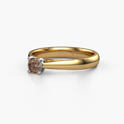 The ring shown above is called the Sam, we call this a solitaire ring because it contains a single gemstone. The engagement ring is made in 14 Carat gold and has a round brown diamond of 0.30 crt. This classic gold solitaire ring with exquisite round brown diamond is a beautiful engagement ring. The open prong setting allows light to strike the gemstone from various angles. The ring also stands out because of the high positioning of the gemstone. Because diamonds symbolize true love and purity, they make the perfect gift for the love of your life. The symbol of eternal love is the centerpiece of this solitaire ring. Like a diamond, all other types of precious metal have their own attributed symbolic meaning. You can compile the solitaire engagement ring yourself in various precious metal combinations. This one has the combination of 14 Carat gold with white gold. Each piece of jewelry is made just for you, with attention to detail and design.After receiving your order, our goldsmiths will passionately start the creative process of making your engagement ring in our own studio. Because we don't have a big stockpile, these costs will not be passed on to you. Our pricing is proof of that! We offer top quality jewels at lowest price, guaranteed.Our team adds new designs to our online collection daily. Our designers and goldsmiths work together in creating the best design. We strive to offer a diverse collection of jewels. Perhaps you have a specific jewel design in mind. One you came across somewhere. Please contact us for a free consultation. We will make you an offer, based on a fair price/ quality ratio, that will baffle you.To make it easier for you, we offer a 30 day return policy. Check our terms and conditions.