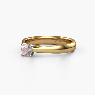 The ring shown above is called the Sam, we call this a solitaire ring because it contains a single gemstone. The engagement ring is made in 14 Carat gold and has a round morganite champagne of 4.2 mm. This classic gold solitaire ring with exquisite round morganite champagne is a beautiful engagement ring. The open prong setting allows light to strike the gemstone from various angles. The ring also stands out because of the high positioning of the gemstone. Because diamonds symbolize true love and purity, they make the perfect gift for the love of your life. The symbol of eternal love is the centerpiece of this solitaire ring. Like a diamond, all other types of precious metal have their own attributed symbolic meaning. You can compile the solitaire engagement ring yourself in various precious metal combinations. This one has the combination of 14 Carat gold with white gold. Each piece of jewelry is made just for you, with attention to detail and design.After receiving your order, our goldsmiths will passionately start the creative process of making your engagement ring in our own studio. Because we don't have a big stockpile, these costs will not be passed on to you. Our pricing is proof of that! We offer top quality jewels at lowest price, guaranteed.Our team adds new designs to our online collection daily. Our designers and goldsmiths work together in creating the best design. We strive to offer a diverse collection of jewels. Perhaps you have a specific jewel design in mind. One you came across somewhere. Please contact us for a free consultation. We will make you an offer, based on a fair price/ quality ratio, that will baffle you.To make it easier for you, we offer a 30 day return policy. Check our terms and conditions.