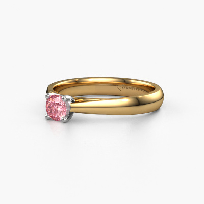 The ring shown above is called the Sam, we call this a solitaire ring because it contains a single gemstone. The engagement ring is made in 14 Carat gold and has a round pink lab grown diamond of 4.2 mm. This classic gold solitaire ring with exquisite round pink lab grown diamond is a beautiful engagement ring. The open prong setting allows light to strike the gemstone from various angles. The ring also stands out because of the high positioning of the gemstone. Because diamonds symbolize true love and purity, they make the perfect gift for the love of your life. The symbol of eternal love is the centerpiece of this solitaire ring. Like a diamond, all other types of precious metal have their own attributed symbolic meaning. You can compile the solitaire engagement ring yourself in various precious metal combinations. This one has the combination of 14 Carat gold with white gold. Each piece of jewelry is made just for you, with attention to detail and design.