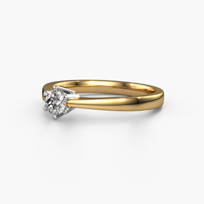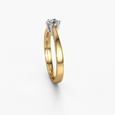The ring shown above is called the Noortje, we call this a solitaire ring because it contains a single gemstone. The engagement ring is made in 14 Carat gold and has a round zirconia of 4 mm. This classic gold solitaire ring with exquisite round zirconia is a beautiful engagement ring. The open prong setting allows light to strike the gemstone from various angles. The ring also stands out because of the high positioning of the gemstone. Because diamonds symbolize true love and purity, they make the perfect gift for the love of your life. The symbol of eternal love is the centerpiece of this solitaire ring. Like a diamond, all other types of precious metal have their own attributed symbolic meaning. You can compile the solitaire engagement ring yourself in various precious metal combinations. This one has the combination of 14 Carat gold with white gold. Each piece of jewelry is made by a team of passionate goldsmiths and jewel designers. This will make your crown jewel truly eye-catching.By using a combination of the latest modern techniques, combined with ancient crafting, we can make all our engagement rings in our own studio. Each jewel is made to order. This is advantageous because we can offer you a price you won't find anywhere else.Our team adds new designs to our online collection daily. Our designers and goldsmiths work together in creating the best design. We strive to offer a diverse collection of jewels. Perhaps you have a specific jewel design in mind. One you came across somewhere. Please contact us for a free consultation. We will make you an offer, based on a fair price/ quality ratio, that will baffle you.To make it easier for you, we offer a 30 day return policy. Check our terms and conditions.